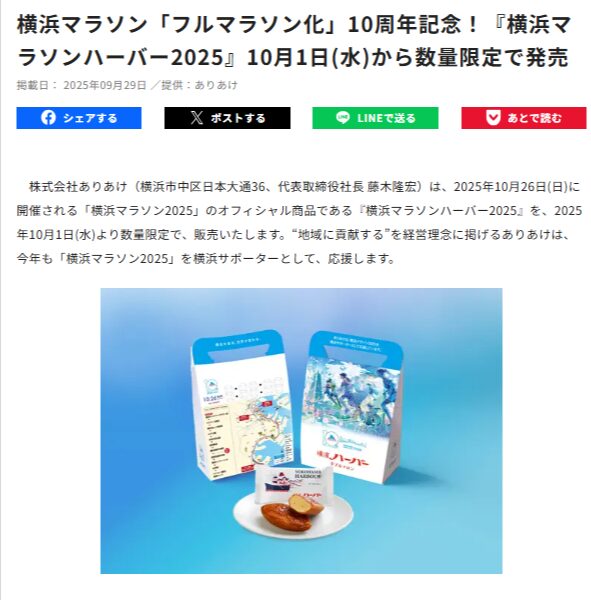 横浜マラソン「フルマラソン化」10周年記念!『横浜マラソンハーバー2025』10月1日(水)から数量限定で発売